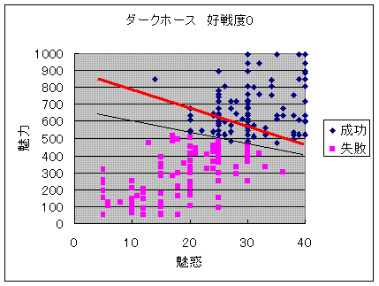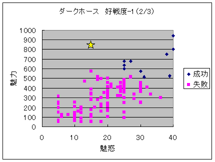 そうそう・・・ダークホースの好戦度-1(3人PTで敵数-1の場合)のグラフはこんな感じ