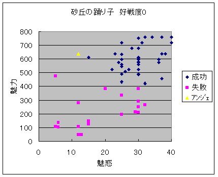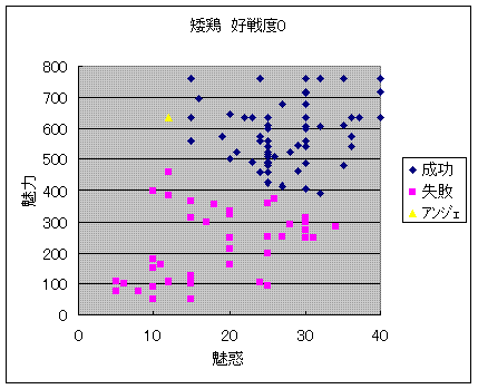 好戦度を0にした場合を想定していますが、成功には好戦度マイナスのデータも含み、失敗には好戦度+1、+2のデータも含んでいます。